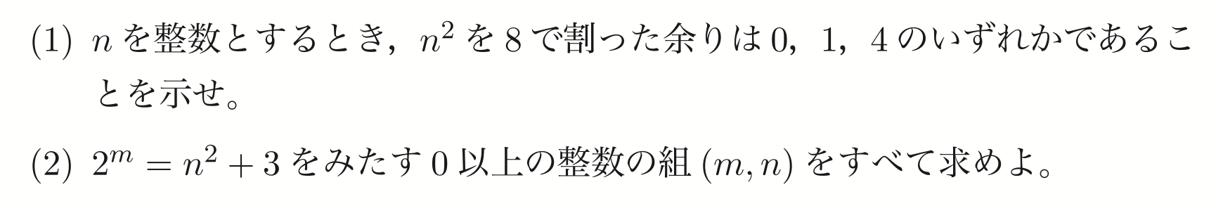 (1)から平方数を8で割った余りは0か1か4。