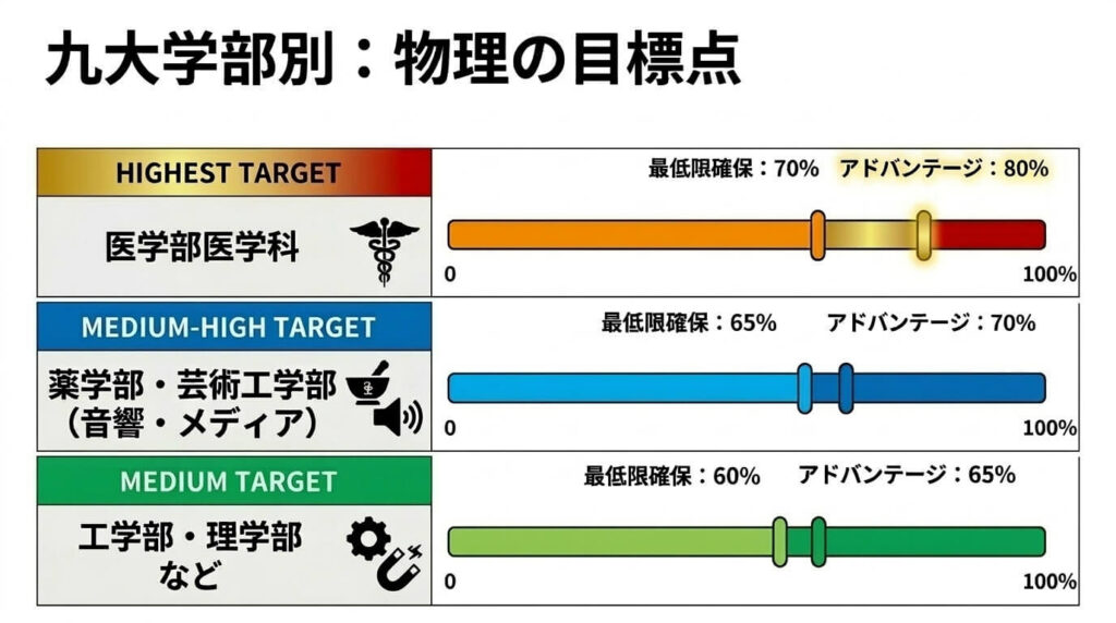 ちなみに物理の学部ごとの目標点はこんな感じ。